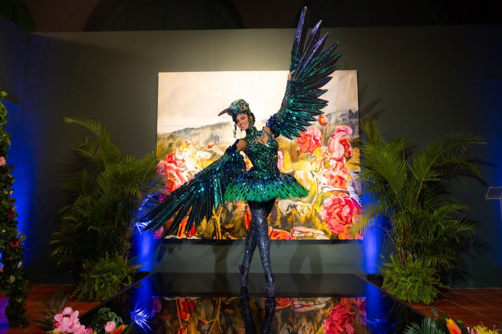 La presentación del traje se realizó entre obras que exploraban la naturaleza y el afecto, en una velada donde moda, arte y música dialogaron con armonía. El evento contó con la colaboración del galerista Walter Otero, la coordinadora de eventos Ana Agosto, la ambientación de José Master Events y la música de Enrique Cárdenas.